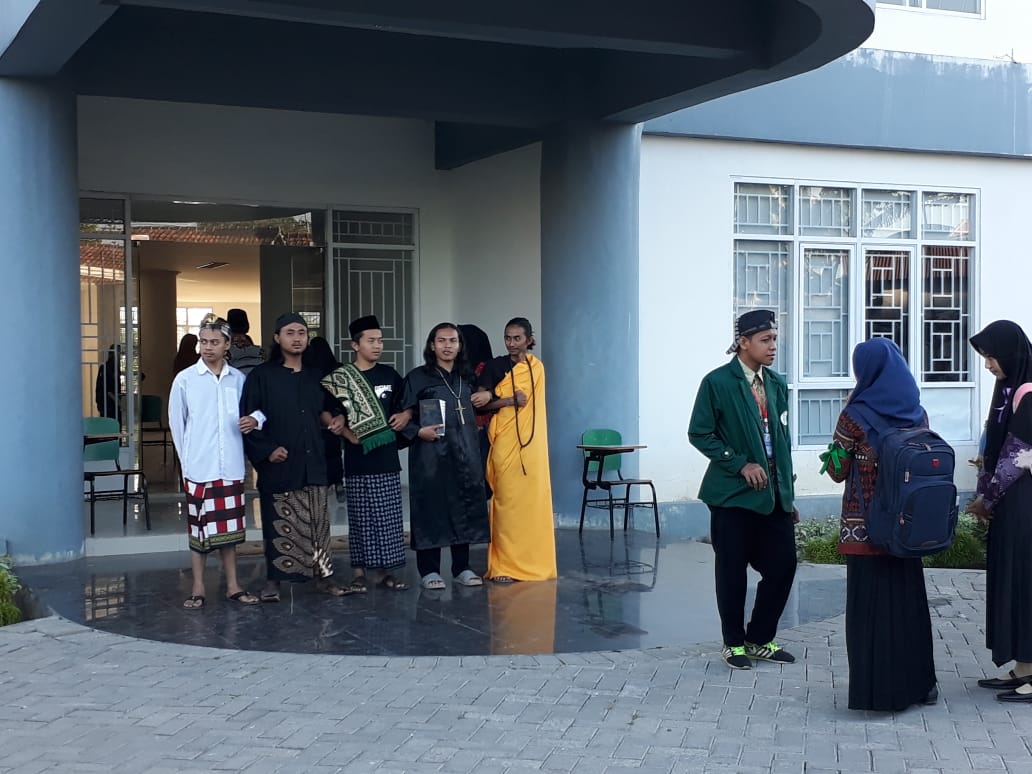 Mengenai boneka peraga, seperti yang diungkapkan Muhammad Hamam selaku steering comite, “Sebenarnya boneka peraga sudah ada sejak hari pertama, tapi kalau hari pertama dan kedua mereka memakai tulisan-tulisan yang provokatif.” Adapun hari ke tiga, boneka peraga yang diperankan panitia tersebut menggunakan pakaian khas beberapa agama yang ada di Indonesia. Lima boneka peraga yang mengilustrasikan pemeluk agama Islam, Kristen, Hindu, Budha, dan Kejawen berbaris di depan gedung Arif Mustakim menyambut kedatangan Mahasiswa Baru (maba).