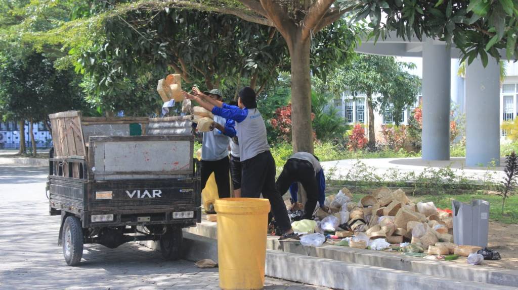 Tumpukan sampah beserta atribut perlengkapan PBAK dalam area kampus tersebut dibersihkan oleh petugas kebersihan kampus. Hasyim, salah satu petugas kebersihan mengungkapkan bahwa pihaknya harus mengangkut sampah dengan tossa sebanyak 3 kali angkut dari hari biasanya. Ia juga menegaskan tidak ada tambahan upah terkait hal tersebut.